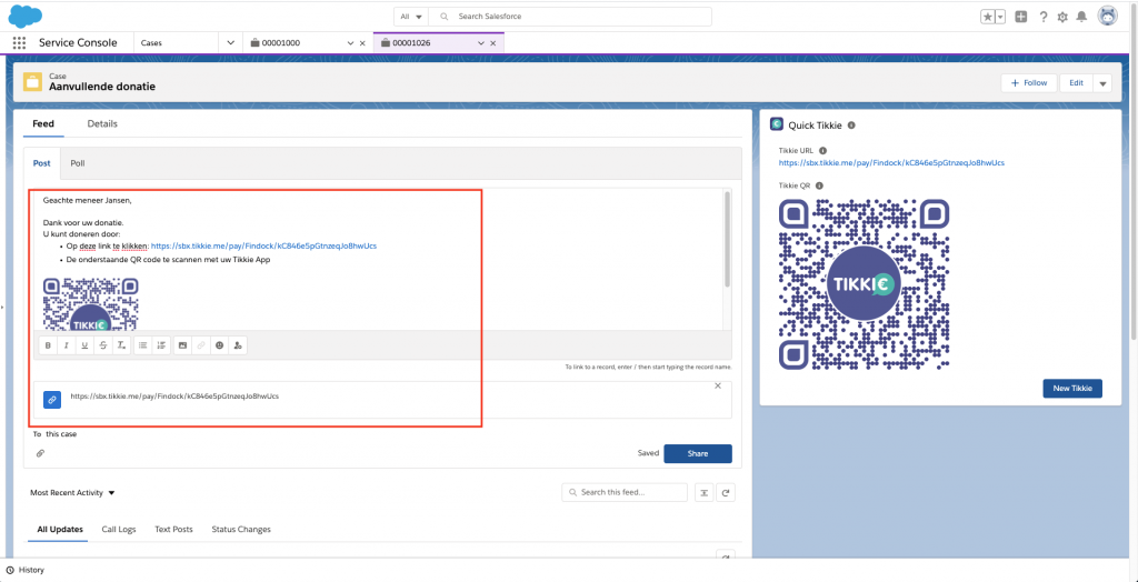 Your Tikkie QR should now be inserted in the Chatter Post or email body.