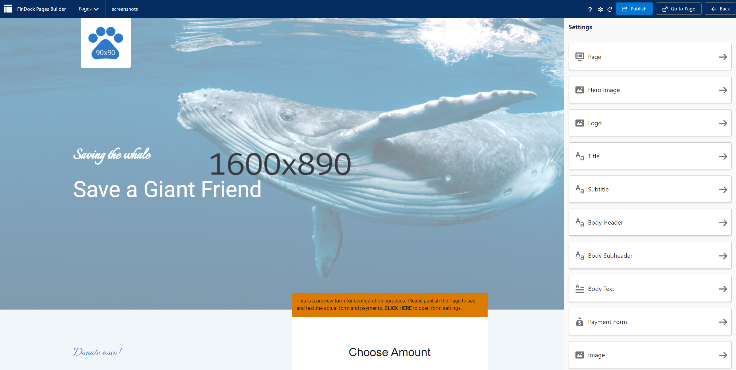 If you haven’t already, please make sure you have configured FinDock Giving Pages.