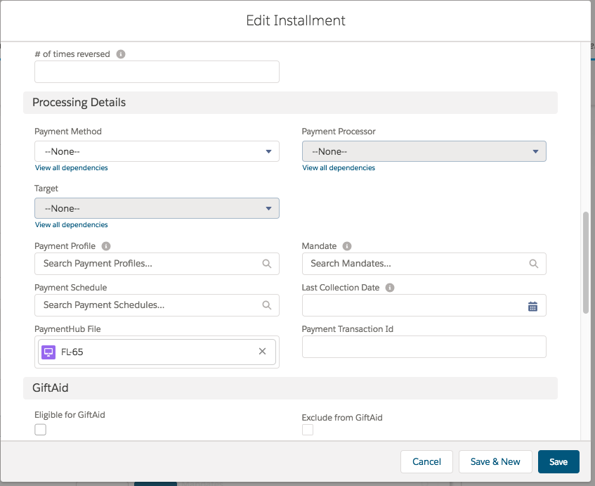 - Edit the installment and link the PaymentHub file record you created earlier.